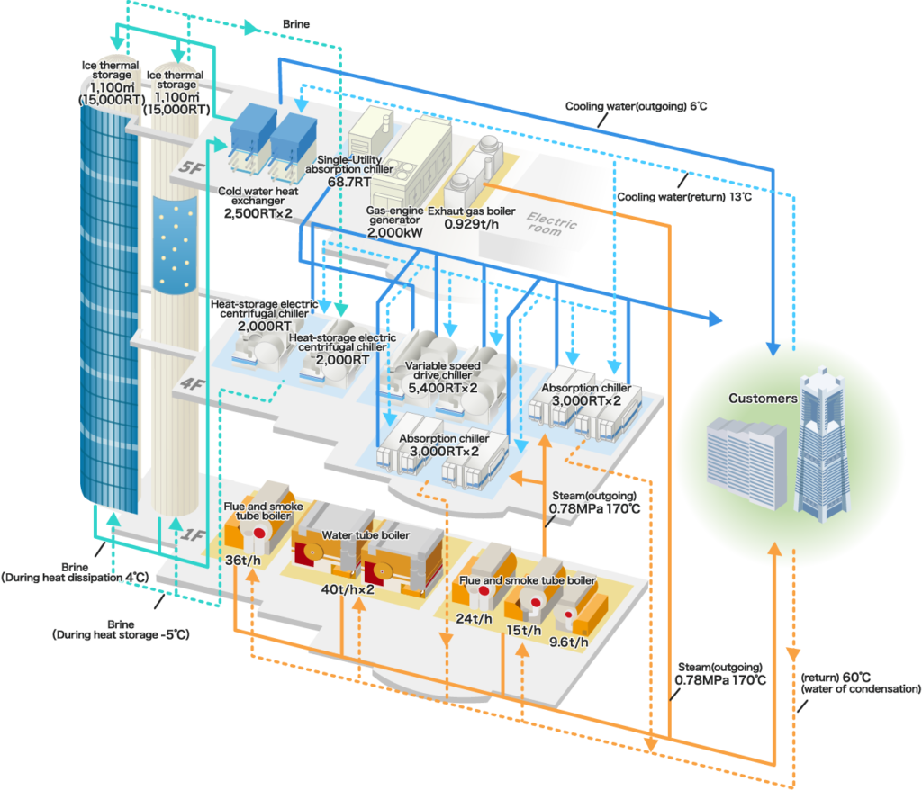 | Heat-storage electric centrifugal chillers (2,000 RT while storing heat) | (2,650 RT while catching up) | 1 | 2,650 RT | 2023 | |